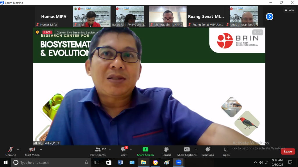 Dalam kegiatan tersebut, hadir sebagai pembicara yaitu para ahli dibidang identifikasi serangga yang bermanfaat yakni Prof. Rosichon Ubaidillah, M. Phill., Ph.D. dari Pusat Riset Biosistematika dan Evolusi – BRIN dan Dr. Syahribulan, M. Si. dari Departemen Biologi Fakultas MIPA Universitas Hasanuddin. Serta turut hadir pula Kepala Pusat Riset Biosistematika dan Evolusi – BRIN yaitu Dr. Bayu Adjie, M. Sc. Untuk memberikan sambutan dan pengantar. Adapun yang bertindak sebagai moderator dalam kegiatan tersebut yakni Bapak Dody Priosambodo, S.Si., M. Si. beliau merupakan dosen dari Departemen Biologi Fakultas MIPA Universitas Hasanuddin.