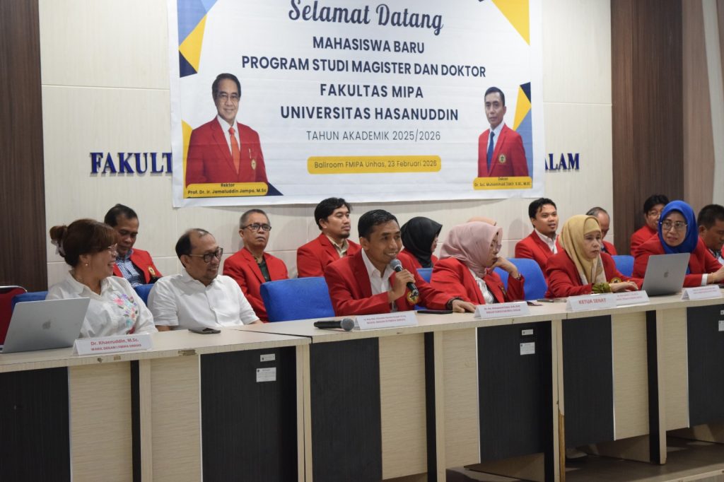 Makassar, 23 Februari 2026, Fakultas Matematika dan Ilmu Pengetahuan Alam Universitas Hasanuddin (FMIPA Unhas) menggelar Penerimaan Mahasiswa Baru Pascasarjana Tahun Akademik 2025/2026 diBallroom Science Building FMIPA Unhas. Sebanyak 49 mahasiswa baru jenjangMagister (S2) danDoktor (S3) resmi diterima dalam kegiatan tersebut.